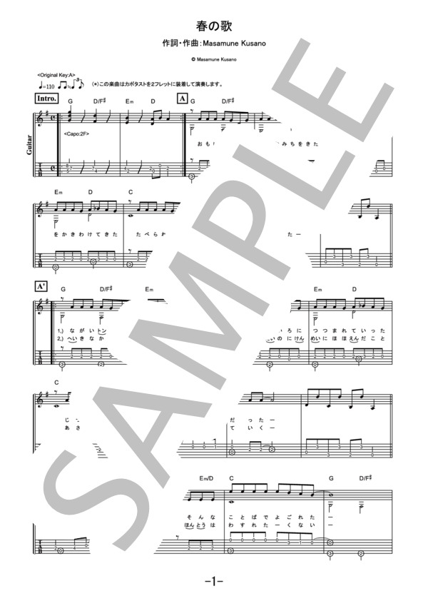楽譜 楽譜 春の歌 藤原さくら ギターソロ譜 藤原 さくら ギターソロ その他 Piascore 楽譜ストア