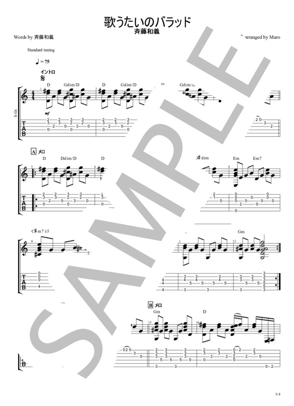 楽譜 歌うたいのバラッド メロディーtab譜 斉藤 和義 ギター ソロ譜 デプロmp 楽譜 Elise