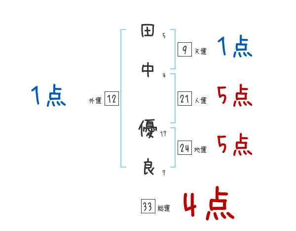 田中に合う画数の良い名前 姓名判断