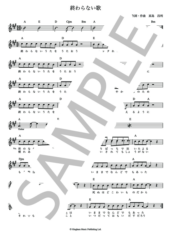 楽譜 終わらない歌 The Blue Hearts メロディー譜 Lead Sheet The Blue Hearts メロディ その他 Piascore 楽譜ストア