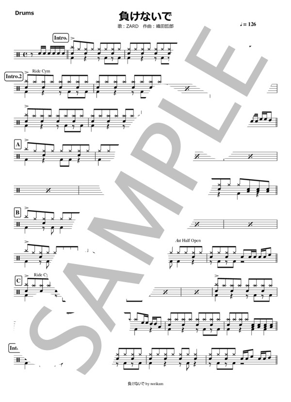 楽譜 負けないで Zard 2ページ ドラム譜 Zard ドラム その他 Piascore 楽譜ストア