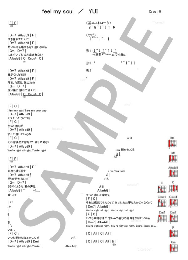 Feel My Soul Yui のコード コードスケッチ