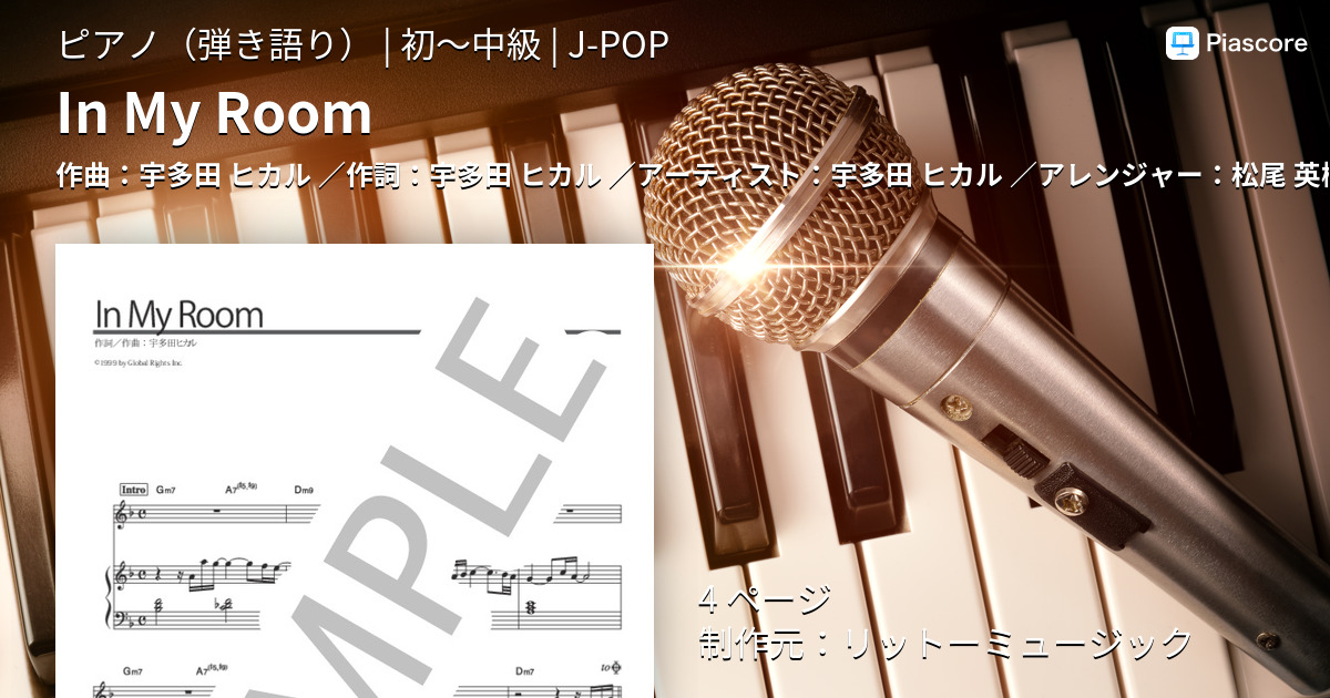 楽譜 In My Room 宇多田 ヒカル ピアノ弾き語り 初 中級 Piascore 楽譜ストア